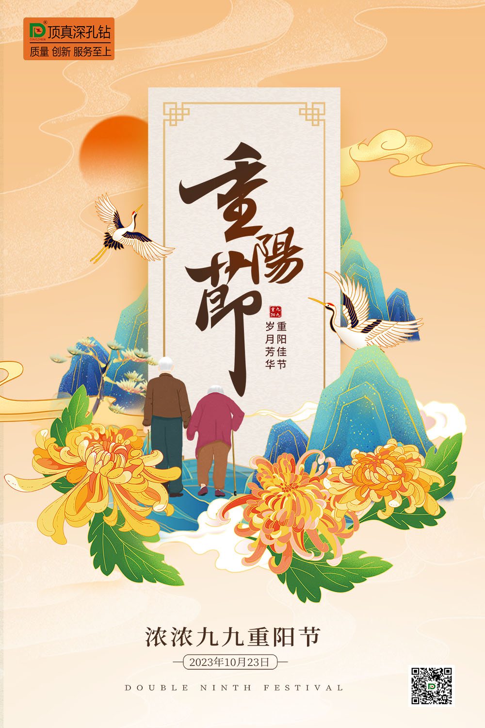 重阳节(又称:老人节),在每年农历的九月九日,是汉族的传统节日,因《易经》中把“六”定为阴数,把“九”定为阳数,九月九日,日月并阳,两九相重,故而叫重阳,也叫重九。重阳节早在战国时期就已经形成,到了唐代,重阳被正式定为民间节日,此后历朝历代沿袭至今。民间在该日有登高的风俗,所以重阳节又称“登高节”,此外还有茱萸节、菊花节等说法。人们在庆祝重阳节时一般会登高、赏菊、喝菊花酒、插茱萸、还要吃糕。另外,由于九月初九“九九”谐音是“久久”,有长久之意,所以常在此日祭祖与推行敬老崇孝活动。