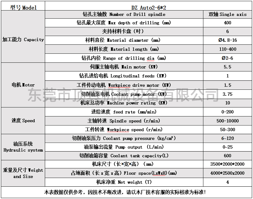 7.提供品牌深孔钻油、进口枪钻、导向钢套和顶真胶套等配套服务。 顶真深孔钻DZ Auto2-6*2参数表