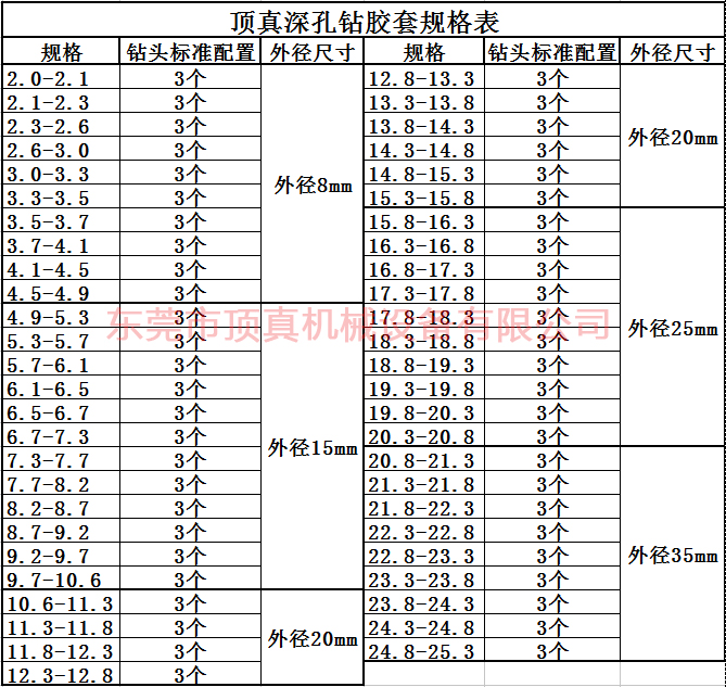 顶真深孔钻胶套采用更优质的橡胶开模生产、制作而成,好用耐磨,为深孔钻钻头专用固定减阻作用,通用各种深孔钻加工机床的橡胶套,型号齐全, 外径 30mm 25mm 20mm 15mm8mm,内径从2.0-25.0mm,货源充足,规格齐全,姐 顶真枪钻胶套,以现在广泛使用的钻头的形状大小,来研制,规格齐全2.0-25.0mm,欢迎前来咨询订购! 注:为了避免引起不必要的麻烦,橡胶套规格多,尺寸不一,有不明白的,下单之前联系客服。