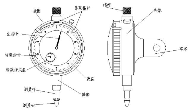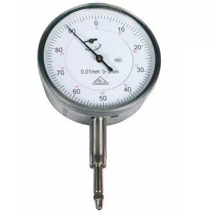 带有测头的测量杆,对刻度圆盘进行平行直线运动,并把直线运动转变为回转运动传送到长针上,此长针会把测杆的运动量显示到圆型表盘上。