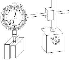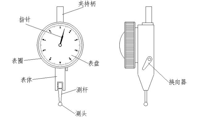 A、盘式指示器的指针随量轴的移动而改变,因此测定只需读指针所指的刻度,右图为测量段的高度例图,首先将测头端子接触到下段,把指针调到“0”位置,然后把测头调到上段,读指针所指示的刻度即可。