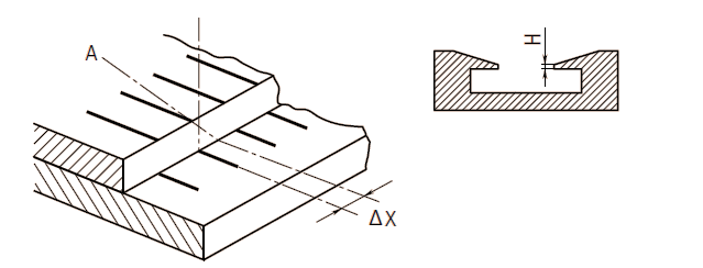 游标尺与主尺刻度面之间存在着阶差高度,这容易引起读数误差。如下图所示,如果从斜方向观察游标刻度线,会产生图中 ΔX 所示误差。为了避免这种因素的影响,JIS规格中规定阶差高度(H)不应大于0.3mm。