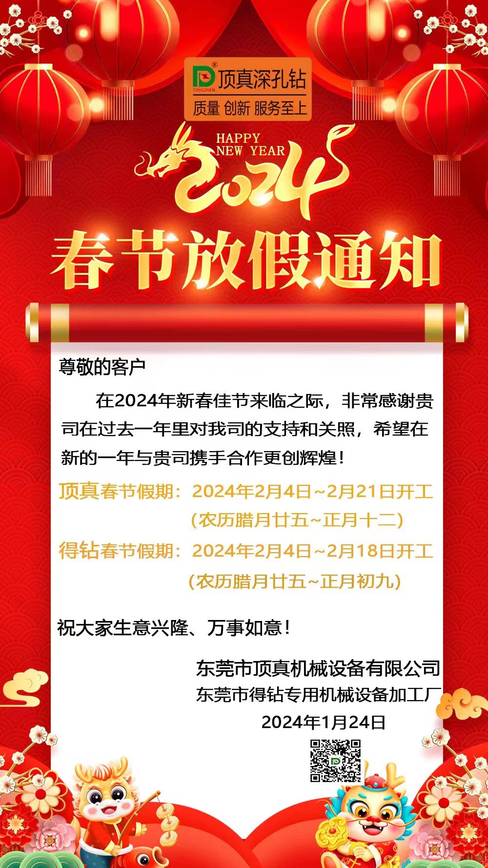 2024年春节放假通知