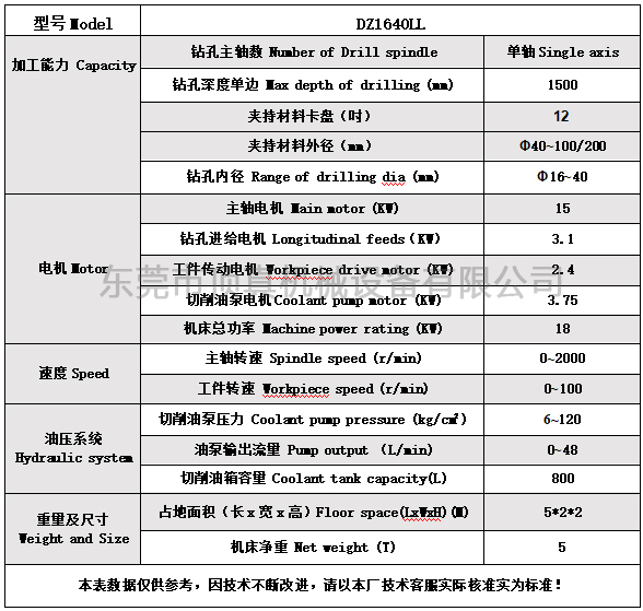 2、钻孔内径16-40mm,钻孔深度单边可钻1500mm,材料外径40-100,两头对钻3000mm;