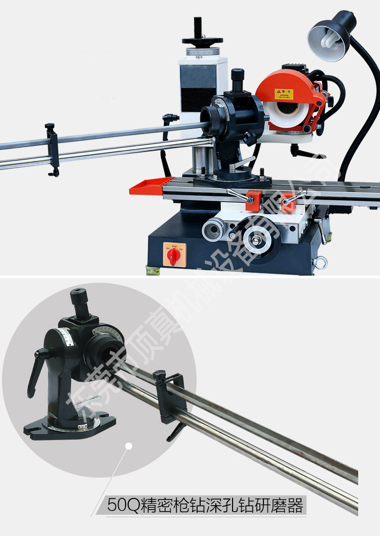 与磨刀夹具配合,可精确高效的修磨各种枪钻,50Q附件专用于刃磨枪钻,一次装夹可完成所有角度的刃磨,无论外径大小,都可确保中心点准确性,所加工的钻刃强度好,精度高。
